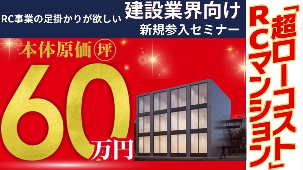 もし明日から、皆様の会社で本体原価60万円のマンションが提案できるとしたら…。
